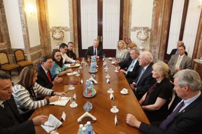 l Ministro delle Relazioni Estere, Bruno Rodríguez Parrilla, ha ricevuto nel pomeriggio di ieri lune`di 19 gennaio i senatori Patrick Leahy (Vermont), Richard Durbin (Illinois), Sheldon Whitehouse (Rhode Island), Debbie Stabenow (Michigan), e I rappresentanti Christopher van Hollen (Maryland) e Peter Welch (Vermont), tutti del Partito Democratico.