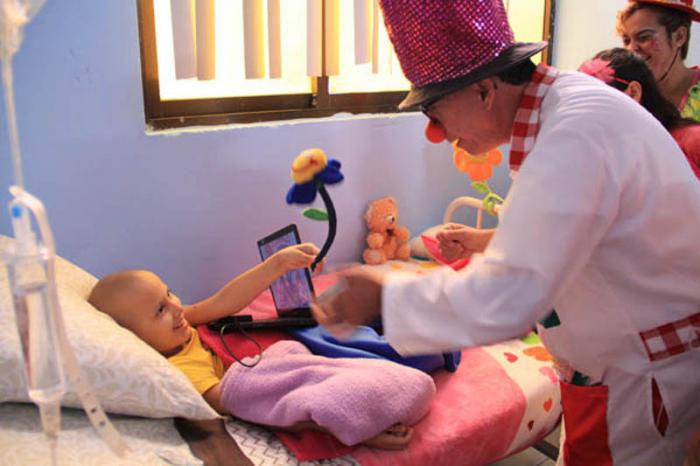 I pagliacci terapeutici di La Colmenita lavorano per l’allegria e l’ autostima dei piccoli ricoverati che in questa occasione si sono presentati per la prima volta come autori e realizzatori di audiovisivi.