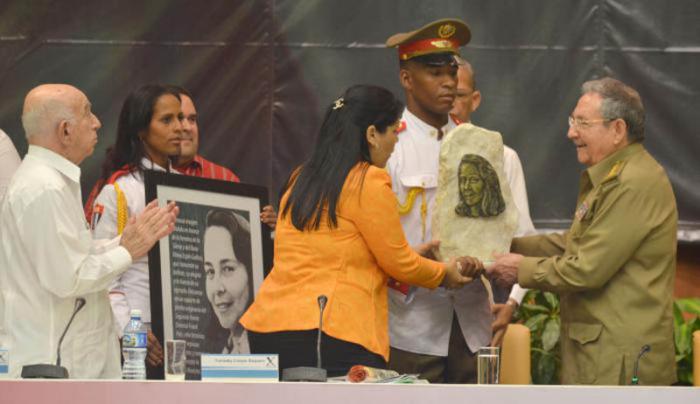 Il Comandante José Ramón Machado Ventura ha ricevuto uno stetoscopio in bronzo, simbolo della sua professione di medico rivoluzionario.