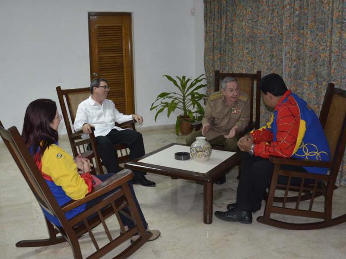 Il Generale d’Esercito Raúl Castro Ruz, Presidente dei Consigli di Stato e dei Ministri, ha ricevuto nel pomeriggio di venerdì 14 il compagno Nicolás Maduro Moros, Presidente della Repubblica Bolivariana del Durante il fraterno incontro, Raúl e Maduro hanoespreso la loro soddisfazione per la marcia delle eccellenti relazioni che legano i due Paesi ed hanno scambiato criteri su importanti temi dell’agenda regionale e internazionale.