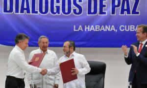 “Il processo di pace non fa marcia indietro”, ha sostenuto il Generale d’Esercito Raúl Castro Ruz, presidente dei Consigli di Stato e dei Ministri della Repubblica di Cuba riferendosi alla fine del conflitto armato in Colombia, il più lungo del continente, dopo aver consegnato al presidente di questo paese, Juan Manuel Santos, e al capo delle FARC-EP, gli accordi firmati a L’Avana, che oggi collocano le due parti più vicino alla fine delle ostilità.