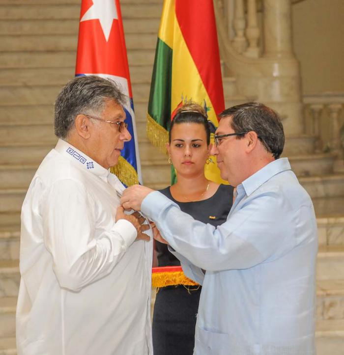 Cuba ha insignito con la medaglia dell’amicizia l’ambasciatore della Bolivia a L’Avana, Palmiro Soria, al termine della sua missione nell’Isola, dopo cinque anni di lavoro impegnato con lo sviluppo dei vincoli bilaterali.