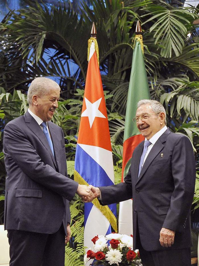 Il Generale d’Esercito Raúl Castro Ruz, Presidente dei Consigli di Stato e dei Ministri ha ricevuto nel pomeriggio di ieri, giovedì 13, il Signor Abdelmalek Sellal, Primo Ministro della Repubblica Algerina Democratica e Popolare, che realizza una visita ufficiale a Cuba.