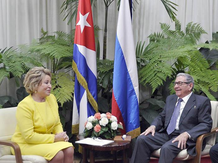 Il Primeo Segretario del Comitato Centrale del Partito Comunista di Cuba, Generale d’Esercito Raúl Castro Ruz, ha ricevuto sabato 16, la Presidente del Consiglio della Federazione dell’ Assemblea Federale della Federazione della Russia, signora Valentina Ivanovna Matvienko, alla guida della delegazione di questo paese che ha assistito ai festeggiamenti per il 500º Anniversario de L’Avana.
