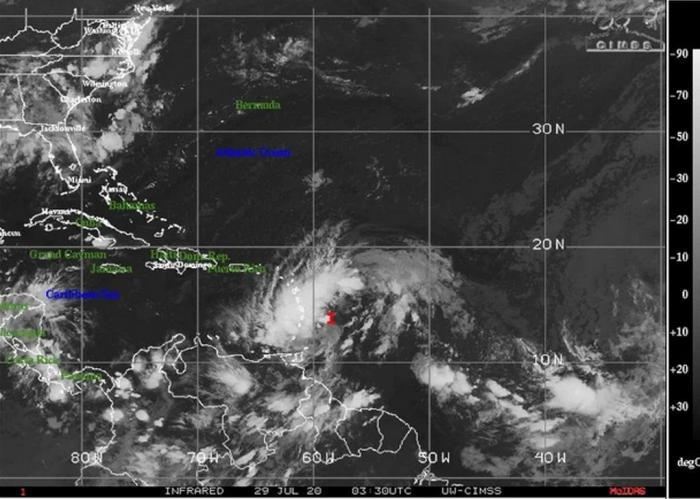 Il rapido spostamento verso ovest-nord-ovest di un’estesa area di basse pressioni, con nubi, piogge e tormente elettriche, localizzata nel pomeriggio di mercoledì 29 a est-sud-est della Repubblica Dominicana, potrebbe incrementare le precipitazioni nella regione orientale di Cuba da venerdì 31 luglio e provocar inondazioni nel litorale nord della provincia di Guantánamo.
