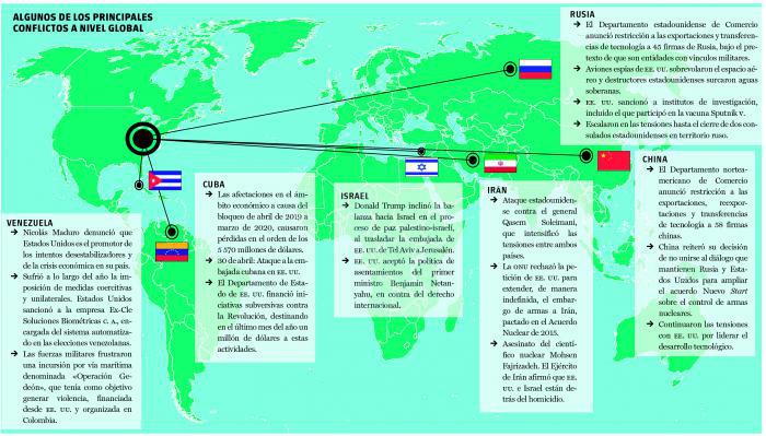 Nel mezzo di tante tensioni i conflitti politici continuano a generare un ambiente d’incertezza. Al centro dell’instabilità globale s’incontra il Governo degli USA, che ha negato l’esistenza della COVID – 19, si è ritirato dall’Organizzazione Mondiale della Salute (OMS), e attualmente conta il numero più alto de contagi e di morti per il SARS-COV-2.