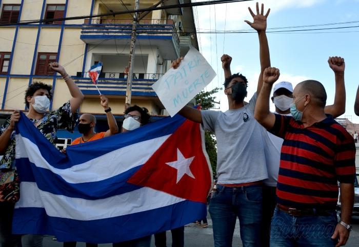 Una signora dal suo balcone ha gridato «Viva la Rivoluzione!» e «¡Viva Cuba Libre!», e la sua voce si è mescolata a qualla di un mucchio di giovani che nella strada agitavano i gagliardetti del Movimento 26 di Luglio e ripetavano sempre più forte, ogni volta sempre più chiaramente: «qQui ci sono Fidel, Raúl e Díaz-Canel», «Patria o Morte, Vinceremos!».