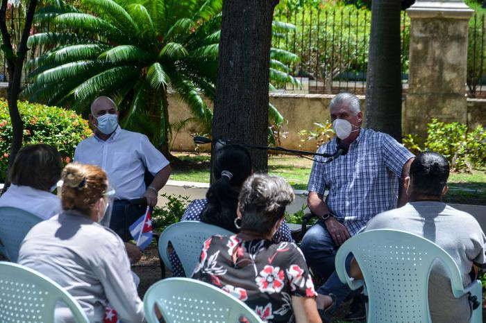 Giusto alle tredici, quando il sole stava dando tutto di sè, dopo quasi quattro ore in San Isidro, nell’Avana Vecchia, il Presidente Miguel Díaz-Canel Bermúdez è giunto in calle Paseo, alla casona del Vedado avanero sede della Federazione delle Donne Cubane, luogo scelto per un altro di questi dialoghi che il mandatario realizza in questi giorni con vari attori della società cubana.