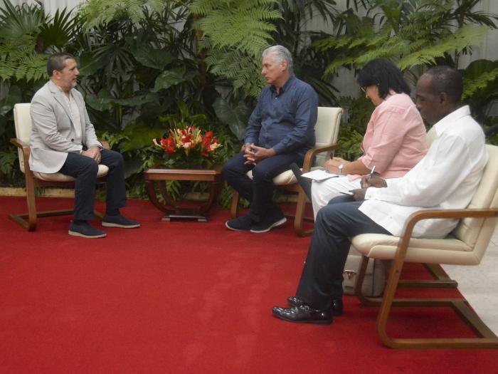 «Per noi è un piacere riceverti per il tuo importante ruolo alla guida dell’Associazione Nazionale di Amicizia Italia-Cuba», ha detto il Capo di Stato all’amico visitatore al quale ha commentato che il suo arrivo nell’Isola è stata l’opportunità per ringraziarlo e riconoscere tutto il ruolo realizzato in appoggio al nostro paese in innumerevoli momenti.