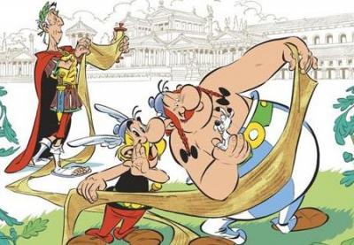 Giulio Cesare acconsente senza sospettare che il papiro cadrà nelle mani di Doblepolemix, che filtrerà il testo ad Astérix e Obélix, e farà iniziare così una nuova sequela di romani sbatacchiati dall’astuto piccolo eroe baffuto e dal suo compagno di avventure bonaccione.