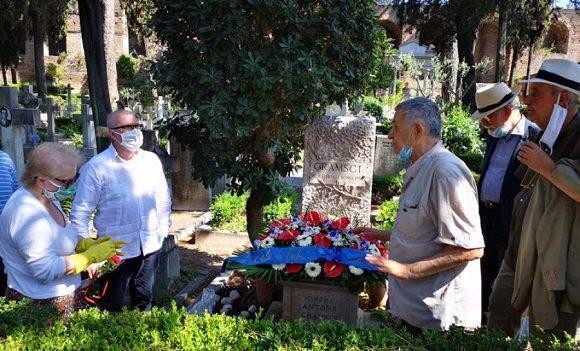 L’ambasciatore di Cuba in Italia, José Carlos Rodríguez, e il presidente dell’ Associazione di Solidarietà Italiana “La Villetta”, Luciano Lacovino, hanno offerto una corona di fiori davanti alla tomba di Gramsci.