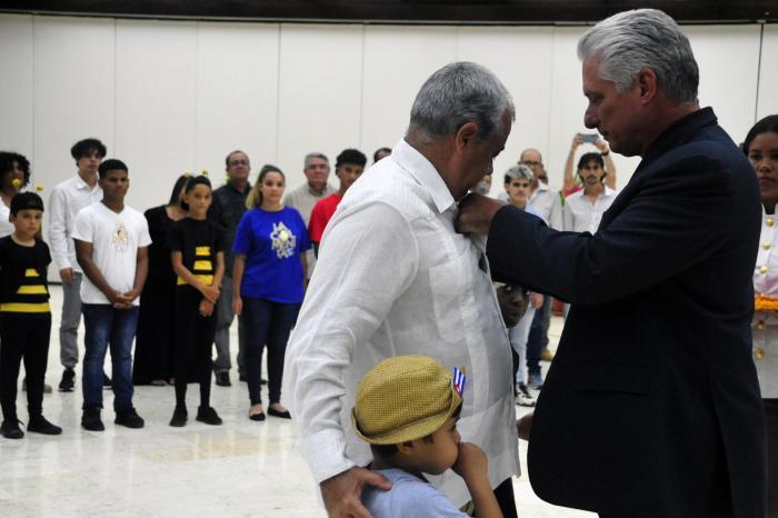 La compagnia dei teatro infantile La Colmenita –che con il miele del suo talento educa il suo pubblico, e il suo direttore Carlos Alberto (Tin) Cremata Malberti hanno ricevuto l’Ordine Félix Varela di Primo Grado, dalle mani