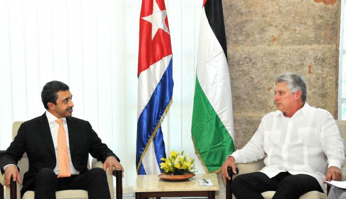 Miguel Díaz-Canel Bermúdez, Primo Vicepresidente dei Consigli di Stato e dei Ministri, ha ricevuto lo Sceicco Jeque Abdullah Bin Zayed Al-Nahyan, Cancelliere degli Emirati Arabi Uniti.