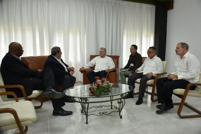 Il Presidente della Repubblica di Cuba, Miguel Díaz-Canel Bermúdez, ha ricevuto, domenica 3, il Primo Ministro di San Vicente y las Granadinas, Onorevole Dr. Ralph Gonsalves, che ha partecipato all’Incontro Antimperialista di Solidarietà, per la Democrazia e contro il Neoliberalismo, svolto dal 1º al 3 novembre a L’Avana.