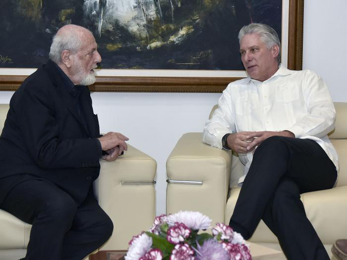Il Presidente della Repubblica di Cuba, Miguel Díaz-Canel Bermúdez, ha ricevuto nel pomeriggio di venerdì 22, il celebre artista italiano Michelangelo Pistoletto, che partecipa al Forum del Rinascimento che dal 2015 si celebra annualmente nell’Isola per accrescere il dialogo, la partecipazione e la costruzione collettiva dei progetti.