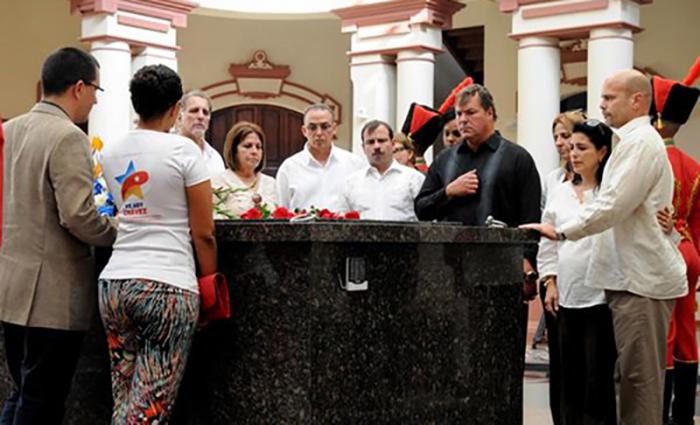 “Crediamo che valeva davvero la pena e in qualche modo siamo riusciti a torcere il braccio dell’impero e per questo siete qui, grazie a questa costanza e a questa perseveranza nella lotta”, ha risaltato il vicepresidente venezuelano. Gerardo Hernández, René González, Ramón Labañino, Antonio Guerrero e Fernando González hanno posto una corona di fiori ed hanno reso omaggio davanti alla sua tomba al Comandante Chávez.