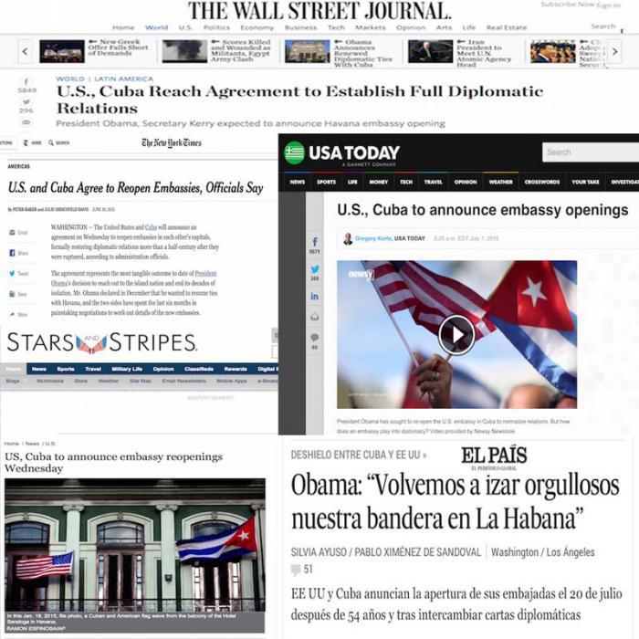 La conferma del ristabilimento formale delle relazioni diplomatiche tra Cuba e gli Stati Uniti ha occupato grandi spazi ieri, mercoledì 1º luglio, nella stampa e le televisioni internazionali che hanno riconosciuto la direzione corretta del passo verso la normalità.