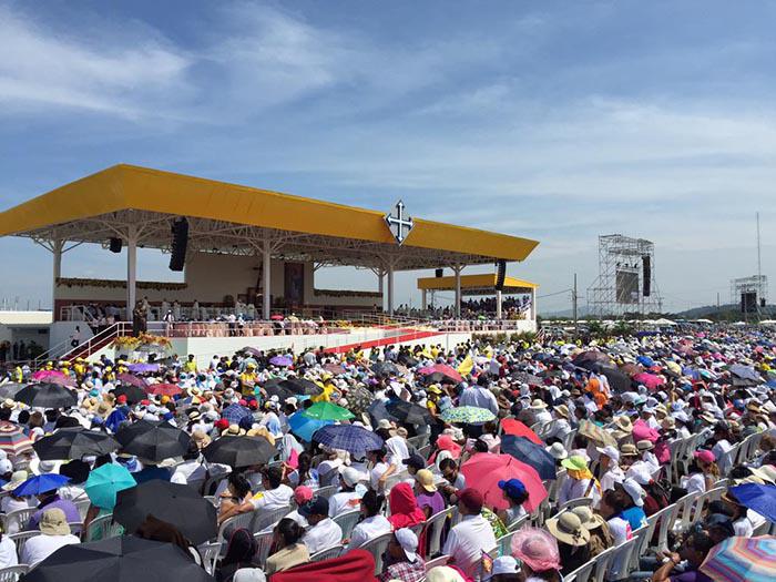 Poi Papa Francisco è tornato a Quito per riunirsi con il presidente Rafael Correa che ha ringraziato il Santo Padre, la massima figura della chiesa cattolica, appena è giunto in Ecuador, per aver scelto il paese come prima tappa del suo percorso in America Latina.