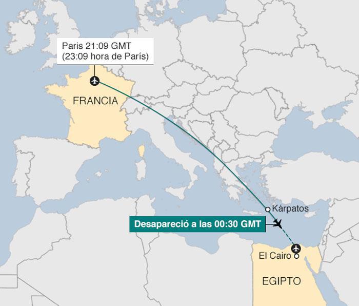 Con una serie di messaggi inviati attraverso questa rete sociale, la linea aerea ha confermato d’aver ricevuto un segnale d’emergenza proveniente dal volo MS804 ed ha inviato gruppi di ricerca alle 04:26, ora di El Cairo.