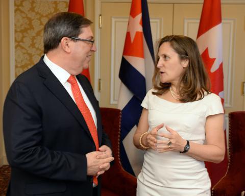 Toronto- Il Cancelliere cubano, Bruno Rodríguez Parrilla, è stato ricevuto dalla Onorevole Chrystia Freeland, ministro delle Relazioni Estere del Canada, durante una visita di lavoro in questo paese. Questo incontro dà continuità allo scambio avvenuto a L’Avana, lo scorso 16 maggio, tra i due cancellieri.
