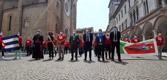 La centrale Piazza del Duomo è stata lo scenario per l’omaggio ai 52 membri della brigata medica Henry Reeve che hanno realizzato questa nobile missione con i loro colleghi italiani per due mesi.