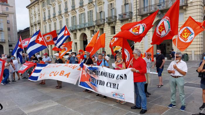 Convocati dal circolo torinese dell’Associazione Nazionale d’Amicizia Italia-Cuba (Anaic), i partecipanti alla manifestazione hanno condannato anche la campagna mediatica con i media tradizionali e le reti sociali, con l’uso di notizie e immagini false in quantità.
