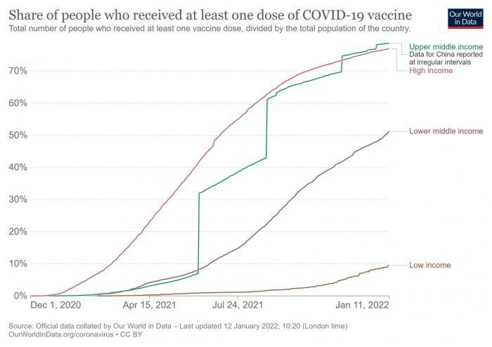 Nel dicembre del 2021, la dottoressa Mariângela Simão, vice direttrice generale della OMS per l’Accesso ai Medicinali e ai prodotti sanitari, ha commentato alla stampa che 98 paesi con scarse entrate non hanno raggiunto il 40% dell’accesso alla vaccinazione e altri 41 non hanno vaccinato nemmeno il 10% della loro popolazione.