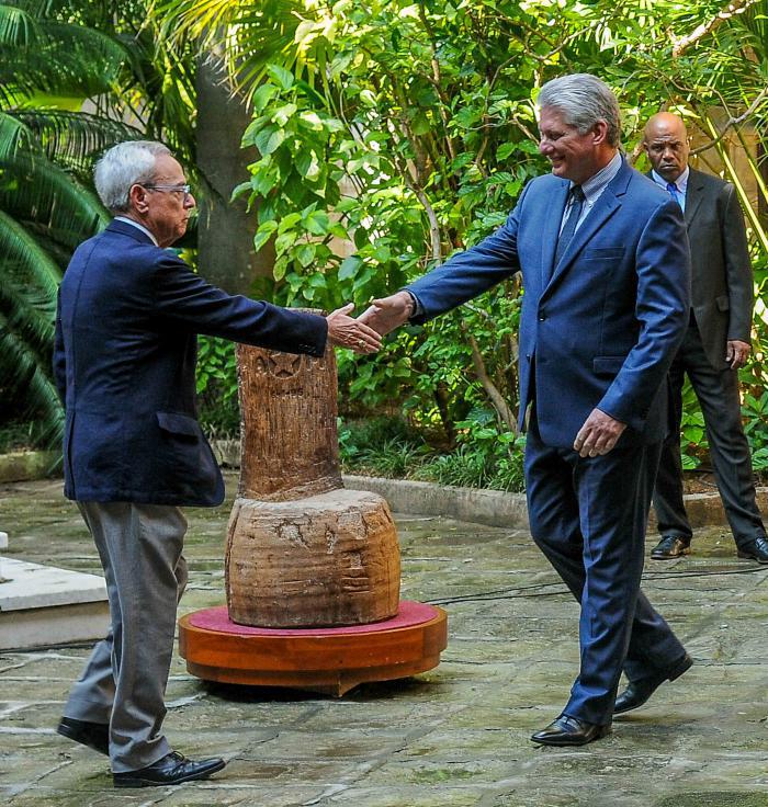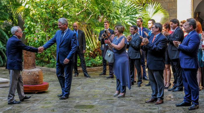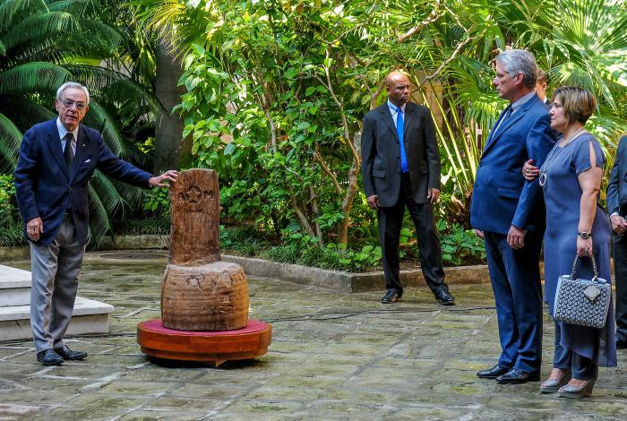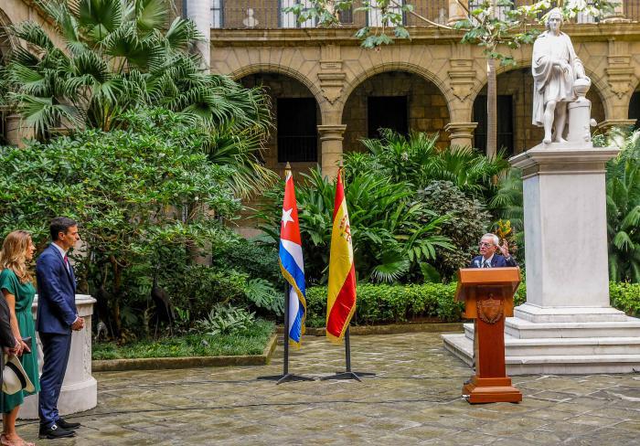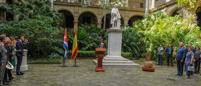 Como parte della sua visita il mandatario spagnolo, Pedro Sánchez ha visitato il Centro Storico de L’Avana Vecchia in compagnia del Presidente dei Consigli di Stato e dei Ministri, Miguel Díaz-Canel e dello storiografo della Capitale, Eusebio Leal Spengler, che ha ricevuto in una cerimonia d’onore dalle mani di Sánchez, la sedia del Luogo Tenente Generale Antonio Maceo, come Prestito temporaneo e rinnovabile.