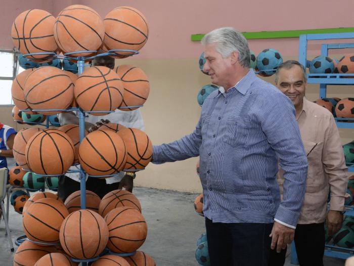 Accompagnato da Osvaldo Vento Montiller, presidente dell’Istituto Nazionale degli Sports, Educazione Fisica e Ricreazione, e da Andrés Alberdi Valero, direttore dell’impresa Batos, il mandatario cubano ha visitato varie aree  come quella dove si lavorano il cuoio e il legname e si confezionano le palle per differenti sports, e dove si è interessato alla stabilità della forza lavoro e alla qualità delle produzioni, tra altro.