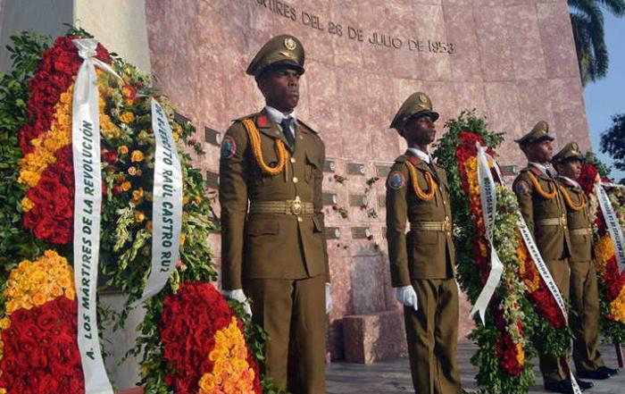 Consiglio di Difesa Provinciale, Lázaro Expósito Canto e Beatriz Johnson Urrutia, hanno posto le corone nel cimitero patrimoniale Santa Ifigenia, accompagnati da altri rappresentanti del Partito, del Governo, della UJC, delle organizzazioni di massa, delle Forze Armate Rivoluzionarie e del Ministero degli Interni.