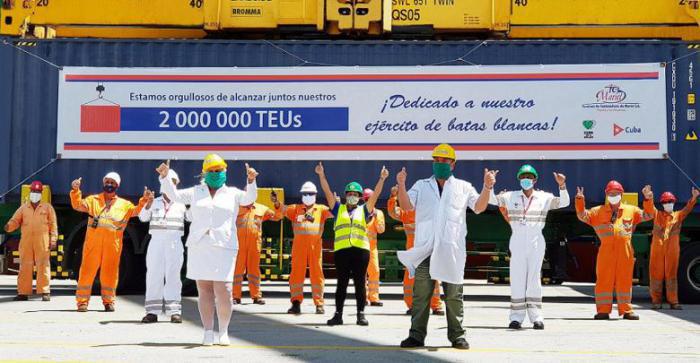La nave Julius, della compagnia Melfi Marine, che forma parte di un servizio regolare tra il Mediterraneo e i Caraibi, ha portato a bordo il contenitore che ha totalizzato la quantità record di TEUS operati dall’installazione portuale, azione dedicata ai lavoratori della Salute, soprattutto alle brigate cubane che lottano contro la COVID-19, nell’Isola e in altre latitudini del mondo.