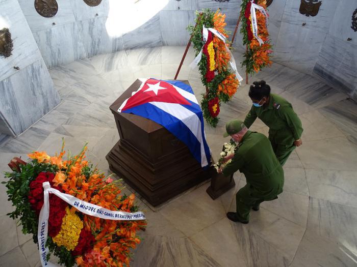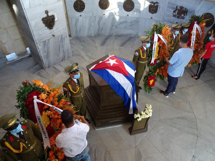 Con i primi raggi del sole, i membri del Comitato Centrale del Partito, Lázaro Expósito Canto e Beatriz Johnson Urrutia, presidente e vicepresidente del Consiglio di Difesa Provinciale, hanno guidato l’omaggio nel quale, dopo l’evocazione delle idee martiane con la danza e la poesia, rispettando le misure di bio sicurezza imposte dalla Covid-19, i presenti hanno dedicato rose davanti al tumulo coperto dalla bandiera cubana.