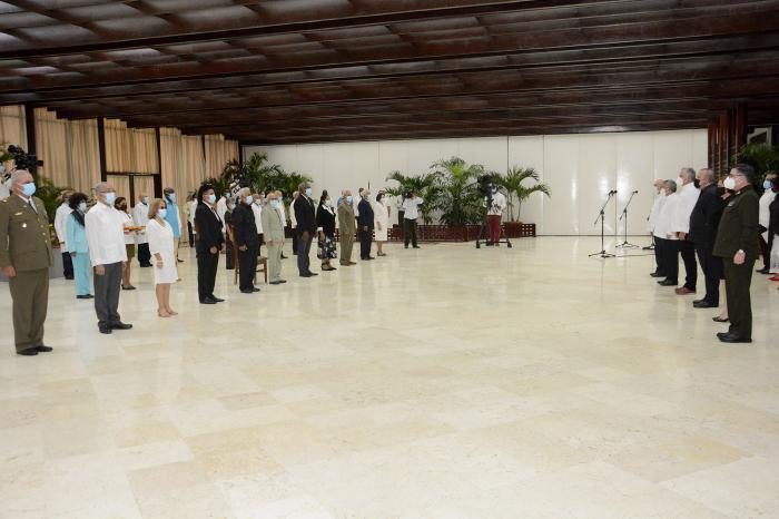 Su proposta del Ministro delle Forze Armate Rivoluzionarie e del Segretario Generale della CTC, il mandatario ha dettato il Decreto Presidenziale 237, che ha assegnato il Títolo d’Eroe del Lavoro della Repubblica di Cuba a 13 compagni. A uno di loro è stato assegnato in maniera postuma, al viceammiraglio Julio César Gandarilla, ex ministro degli Interni.