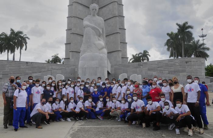 Sportivi di ciclismo, nuoto, triatlon, tuffi, vela, nuoto artistico e pugilato hanno realizzato a un’affermazione della dignità nel memoriale José Martí, nel quale Anisley García Navarro, (tuffi) e Andy Manuel Ávila González, (nuoto artistico), hanno reso omaggio all’Eroe nazionale con un’offerta di fiori a nome della delegazione, il cui lemma è /Consegna e godimento, un sogno condiviso.