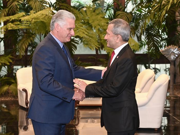 Díaz-Canel ha ringraziato il Cancelliere per la posizione invariabile di Singapore contro il blocco economico, commerciale e finanziario imposto dal Governo degli Stati Uniti.
