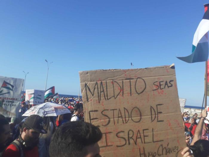 dirigenti della Ri voluzione, hanno accompagnato centinaia di giovani e di cittadini dei quartieri del centro della capitale, in avenida de Malecón da G e sino all’ambasciata degli Stati Uniti, per dimostrare la loro solidarietà con le vittime dei bombardamenti d’Israele sulla Striscia di Gaza.