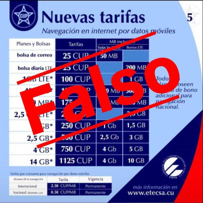 L’Avana – L’ Impresa delle Telecomunicazioni di Cuba S.A. (Etecsa) ha assicurato che è falsa l’informazione sulle nuove tariffe di navigazione in Internet per dati mobili.