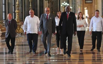 Con la tradizionale cerimonia militare e la rivista, rpima dell’eecuzione degli inni nazionali eseguiti dalla Banda dei Concerti dell’Unità delle Cerimonie delle Forze Armate Rivoluzionarie, il membro del Burò Politico del Comitato Centrale del Partito e Presidente dell’Assemblea Nazionale del Potere Popolare e del Consiglio di Stato, Esteban Lazo Hernández, ha ricevuto il 17 febbraio, nel Capitolio Nazionale, Jorge Rodríguez, titolare dell’Assemblea Nazionale della fraterna Repubblica Bolivariana del Venezuela, che realizza una visita ufficiale nell’Isola grande delle Antille.