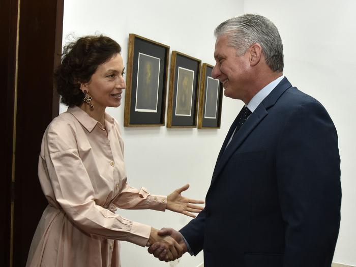 Il Presidente della Repubblica di Cuba, Miguel Díaz-Canel Bermúdez, ha ricevuto venerdì 6 la Direttrice Generale dell’Organizzazione delle Nazioni Unite per l’Educazione, la Scienza e la Cultura (Unesco), Signora Audrey Azoulay, che realizza una visita ufficiale nell’Isola.