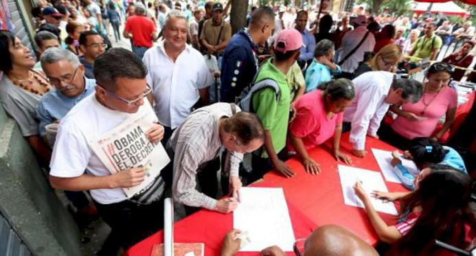 Caracas – Migliaia di persone si sono unite nel processo di raccolta delle firme per chiedere la derogazione del decreto firmato dal presidente degli Stati Uniti, Barack Obama, lo scorso 9 marzo, in cui si dichiara che il Venezuela è una minaccia per gli interessi della nazione del nord.