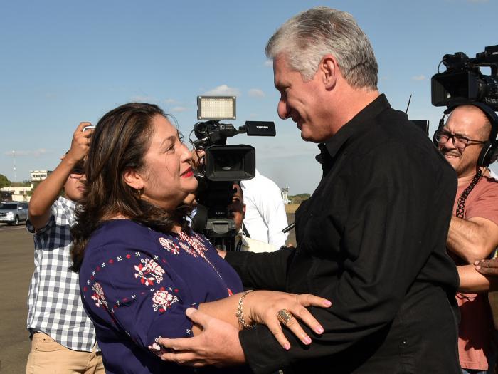 Nella pista dell’aeroporto Internazionale Augusto C. Sandino, il Capo di Stato della Repubblica di Cuba è stato ricevuto da Sidartha Marín, ministro assessore presidenziale per i temi internazionali del paese anfitrione e dalla ministro alla Difesa, Martha Elena Ruiz Sevilla.