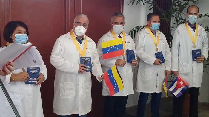 Il dottor Carlos Alvarado, ministro del Potere Popolare per la Salute del Venezuela, ha reiterato il ringraziamento al Governo e al popolo di Cuba per «quello che hanno fatto e fanno a favore della vita e della salute della popolazione nella Patria di Bolívar», ha segnalato prima d’imporre la medaglia Ordine al Merito Dottor Gilberto Rodríguez Ochoa, a vari dei medici per il loro ottimo lavoro in differenti Stati. (GM – Granma Int.)