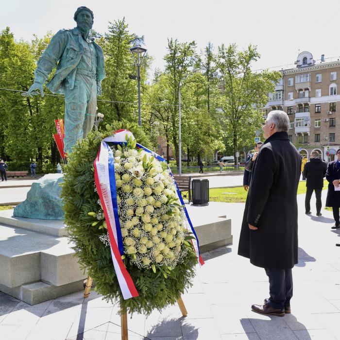 Mosca, Russia.–Davanti alla scultura in bronzo di Fidel nella piazza che porta il suo nome a Mosca, il Primo Segretario del Comitato Centrale del Partito Comunista e Presidente della Repubblica, Miguel Díaz-Canel Bermúdez, ha dedicato un sentito omaggio in nome del popolo di Cuba, al leader storico della Rivoluzione ha offerto una corona di fiori.
