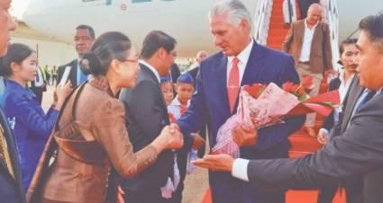 VIENTIANE.- Il Primo Segretario del Comitato Centrale del Partito e Presidente della Repubblica cubana, Miguel Díaz-Canel Bermúdez, è giunto nella notte di sabato 6 (ora locale) nella capitale del Llaos, dov’è stato ricevuto da autorità del paese e studenti che lo aspettavano nel terminal aereo, rappresentando un popolo che prova un grande affetto per Cuba.