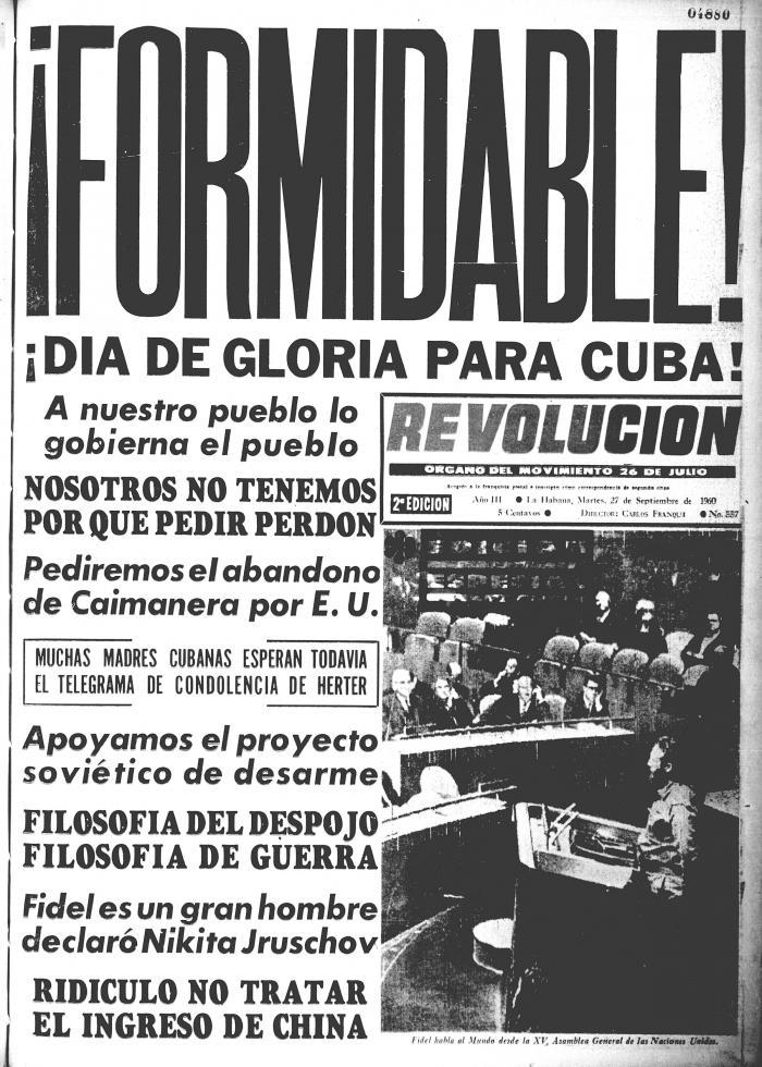 Il 26 settembre del 1960, alle 14:57, il giovane di 34 massimo leader della Rivoluzione Cubana, Fidel Castro Ruz, iniziò il suo improvvisato e storico discorso –18 stenografisti trascrissero le sue parole–, davanti al plenum della xv Assemblea Generale della ONU,